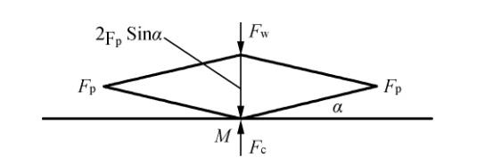 根據受力分析可得到如下結論:FC = FW - 2FP·sinα ( 1)